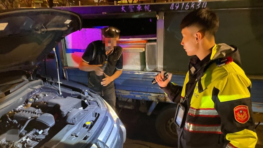 因深夜各汽車維修廠均無營業,李男求助無門,正當為了生計擔憂時,恰巧巡邏員警經過,初步判斷應該是車用電池蓄電不足,導致引擎無法發動,立即使用警用巡邏汽車協助接電,經測試數次後,總算順利發動引擎,也讓李男鬆了一口氣。
