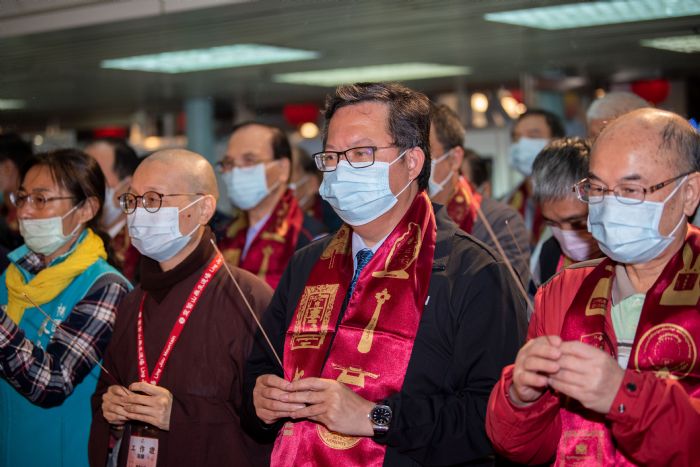桃園市長鄭文燦(9)日晚間前往桃園市立體育館,出席財團法人靈鷲山佛教基金會「靈鷲山水陸空大法會啟建暨宗教聯合祈福會」時表示,第27屆靈鷲山水陸空大法會,連續26年在桃園巨蛋舉辦,顯見心道法師對於桃園有著深厚的感情及緣分。而今(109)年宗教聯合祈福會以「信仰給力,心靈免疫」為主題,邀請桃園在地宮廟共同祈福,希望透過宗教的正能量,讓各宗教間彼此攜手,共同追求更好的世界。