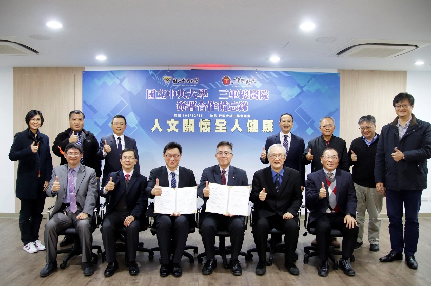 中央大學周景揚校長與國防醫學院三軍總醫院王智弘院長12月15日簽訂「學術交流合作協議書」,雙方將在教學與研究領域推動下,結合中央大學生醫團隊的研發能量和三總醫院的臨床專業,創造學醫綜效雙贏的新里程碑。