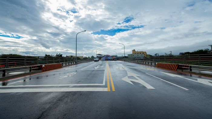 鄭市長表示,延平路(國道二號橋下以北至樹仁三街)道路新闢工程,分為橋梁段及平面道路段施作,計畫總長約265公尺,道路及橋寬約20公尺,其中橋梁長度約85公尺,為連續三跨鋼I型梁橋,中間設有2座曲面造型橋墩,提供雙向各設置3.2、3.5公尺共4車道、道路排水系統、路燈照明設備、兩側設置1.5公尺人行步道等。此外,為解決大樹林地區淹水問題,市府水務局也推動大樹林滯洪池計畫,本案橋下空間將配合滯洪池計畫轉型為埤塘生態公園,並設置排水箱涵提高防災功能,統合公共設施管線配置,提升聯外道路效益。