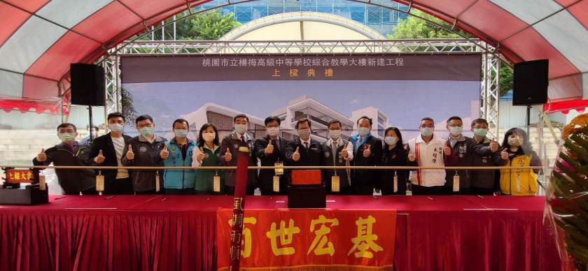 桃園市長鄭文燦28日上午前往楊梅高中,出席桃園市立楊梅高級中等學校「綜合教學大樓新建工程」上梁典禮活動。鄭市長表示,楊梅高中「綜合教學大樓新建工程」總經費約2.76億元,其中教育部補助約1.12億元,該基地位於楊梅高中校園中心,進行圖書館、教學大樓及廚房等重建工程,串連校園空間,工程於今(109)年1月17日開工,預計明(110)年6月前完工,並於下個學年度開始前正式啟用,盼學校及建築團隊全力以赴,讓全校師生擁有更優質的教學及學習環境。