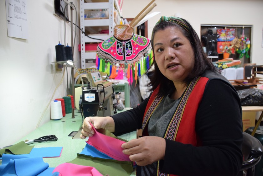 49歲的阿美族婦女林惠美,原本工作穩定,卻在邁入中高齡後,相繼面臨失婚及失業的雙重打擊,個性樂觀開朗的她,卻沒有因此灰心,她報名勞動部勞動力發展署桃竹苗分署委辦的「平車拷克技能應用班」學打版車縫,結訓後她成立個人工作室-「瑪榖愛工坊」,透過網路平台接單,充滿色彩的原民服飾、袋包及文創小物,讓她的產品大受歡迎,林惠美高興地表示「職訓找回年輕時的夢想,更讓她重啟嶄新人生!」
