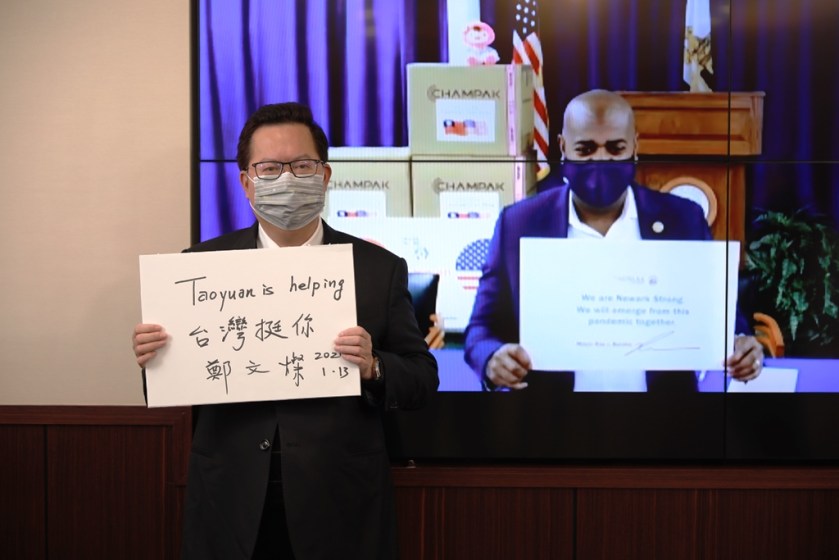 秘書處長顏子傑表示,桃園市持續給予國際城市友好支援,桃園市府在去年聖誕節前夕,媒合桃園在地口罩國家隊「千倍康」援助捐贈N95口罩,給予紐華克強力支援。台灣抗疫屆滿周年,第一線醫護人員承擔極大工作壓力,也承擔很重的防疫責任,攜手為他們加油、打氣、支持。