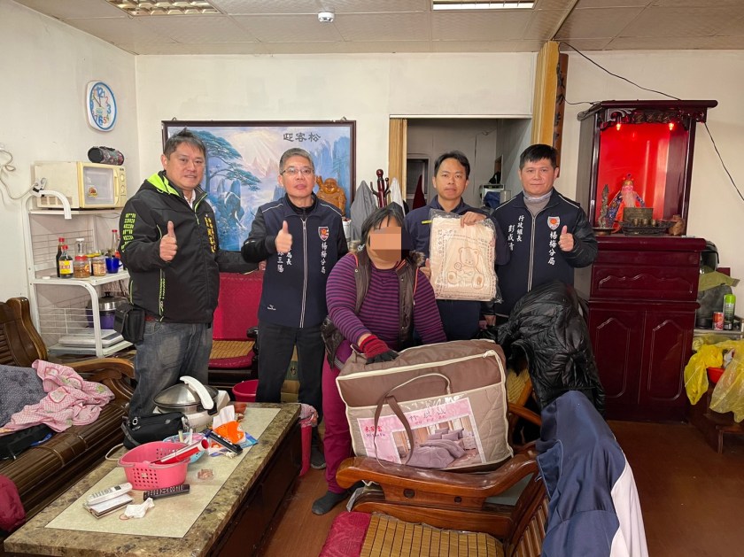 強烈寒流接連發威、氣溫驟降,13日楊梅分局協同草湳派出所結合里長、民防分隊與地方善心人士準備保暖棉被、物資至轄內關懷弱勢,慰問對象大多是獨居老人及低收入戶等家境較為貧困的家庭,從員警手中接過棉被及物資後後頻頻稱謝,員警衷心期盼居民能夠平安地度過這個寒冬迎接農曆新年。