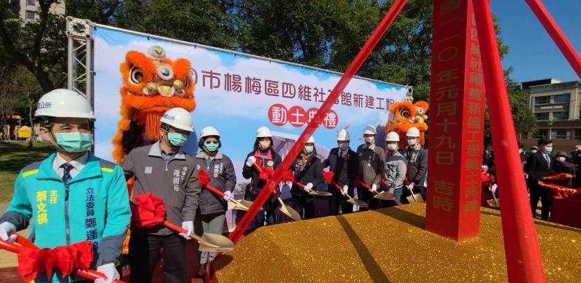 楊梅區公所19日上午於四維兒童公園辦理「桃園市楊梅區四維社福館新建工程」動土典禮,桃園市長鄭文燦、市議員涂權吉、周玉琴、李家興、鄭淑方與社會局鄭貴華局長、民政局副局長張世威、楊梅區長羅國裕、四維里羅文明里長及鄰近各里長等皆到場參與,場面熱鬧溫馨。