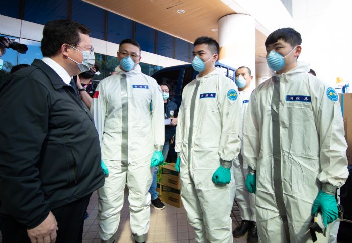 桃園市長鄭文燦(21)日上午前往部立桃園醫院門診大樓前,視察部立桃園醫院周遭消毒作業情形,並捐贈空氣清淨機供醫護同仁使用,鄭市長表示,近期桃園市發生確診新冠肺炎的本土案例,市府加強部桃周邊社區的清潔消毒作業,也感謝禾聯碩股份有限公司在疫情關頭,再捐贈20台空氣清淨機提供給部立桃園醫院使用,以行動支持第一線醫護人員,共同為防疫盡一份心力;市府也準備雞精慰勞協助消毒的陸軍六軍團33化學兵群及環保局防疫消毒大隊,感謝國軍與環保局隊員一同為防疫共盡心力。