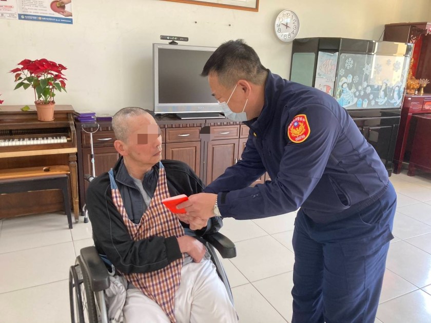 上湖派出所長林祺笙與同仁至安養機構關懷弱勢老人,林所長認為警察不僅擔負維護治安、交通主要工作外,更能拋磚引玉善盡社會責任來幫助弱勢老人,備妥加菜金3000元、泡麵5箱、餅乾5箱等物資暖送給安養機構,讓長輩們提前過個暖心的農曆春節。