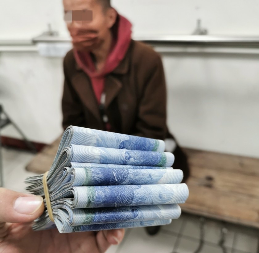 印尼籍民眾伊O因一時疏忽將身邊裝有新台幣16萬元、印尼鈔30萬元及證件的袋子遺留在國小前,等驚覺不見而重回現場尋找時早已不翼而飛,草湳所警員莊國煜獲報後,與同仁鄭紹泳、張雲淑、林子森、洪子婷分工調閱沿途監視器,終於在11日中午在該路段發現嫌疑人陳O股。