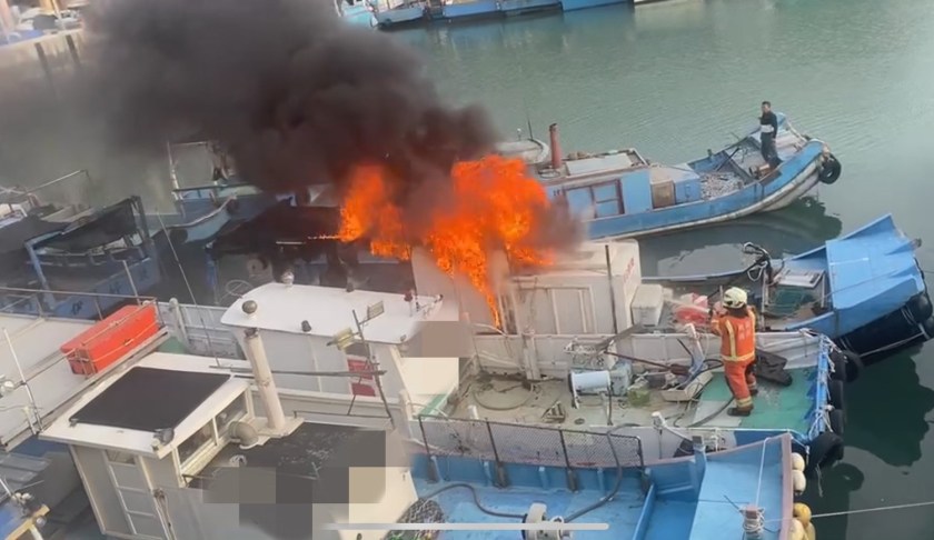 海巡署北部分署第八岸巡隊永安安檢所勤務人員16日7時48分,發現港區內泊區漁船冒起濃煙,立即回報第三(桃竹)巡防區指揮部,並通報警、消單位共同滅火搶救,後續即時撲滅火勢無人員傷亡。
