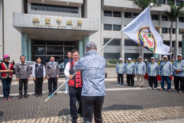 桃園市長鄭文燦(19)日於市府前廣場,出席「110年全國原住民族運動會授旗典禮」,鄭市長表示,兩年一度的全國原住民族運動會,今日起至3月22日為期4天在宜蘭縣舉辦,本市代表隊選手加隊職員共714人,參與17項競賽種類,今日賽事第一天即傳來捷報,桃園代表隊已拿下青少年男子組棒球冠軍、公開女籃,青少年女籃、男籃及公開男子組慢壘第一輪首勝的好成績。鄭市長也參與祈福儀式,並代表市府授旗予桃園市代表隊總教練朱金水,期許桃園代表隊再創佳績,奪得三連霸榮歸桃園。