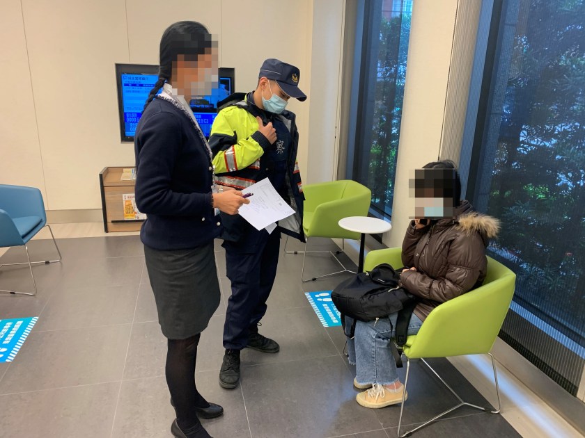 行員看見女大生邊講電話邊填寫提款單,詢問時又支支吾吾無法解釋,行員驚覺有異,隨即通知警方到場,員警趕赴現場了解狀況後,苦口婆心勸說並告知女大生已遭詐騙之情事,惟女大生仍對詐騙集團的詐術深信不疑,甚至還向員警表示她是為了配合檢方辦案,執意要提領現金配合指示,員警持續耐心地向女大生解釋,其接到的電話是近年來典型詐騙集團手法,『假冒檢警辦案,真詐騙現金』,藉由民眾無知、恐慌的心理,進一步騙取個資或告知帳戶遭冒用,最後導致民眾財物損失。女大生驚覺遭到詐騙後,才恍然大悟,取消提領款項之念頭,保住了生活費。