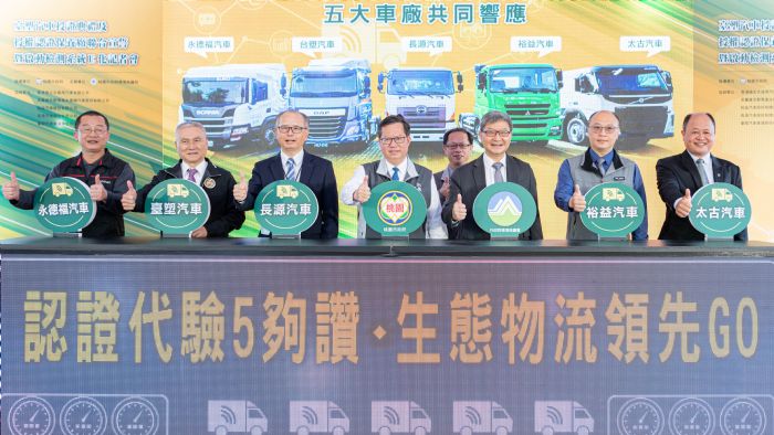 桃園市長鄭文燦26日上午前往龜山區柴油車動力計排煙檢測站,出席「台塑汽車授證典禮及授權認證保養廠聯合宣誓暨啟動檢測系統E化記者會」。鄭市長表示,空污減量是當前台灣的重大課題,如何讓使用中的柴油車輛減少空污,除了制定法律及執行檢查,公私部門協力合作能更有效提升改善空污的效率。桃園市首創全國「保檢合一」制度,實施以來,認證過的柴油車就不再出現違規的烏賊車紅單,成效非常良好。去(109)年太古商用汽車中壢廠(VOLVO)、永德福汽車平鎮廠(SCANIA)、裕益汽車中壢廠(FUSO)、長源汽車桃園廠(HINO)等4家認證保養廠,共核發1,586輛柴油車自主管理標章,今日歡迎第5家台塑汽車工三廠(DAF)加入,桃園市認證保養廠品牌佔設籍大型柴油車輛數將達8成,可望大幅提升大型柴油車輛符合排放標準,對推動空污減量有很大的幫助。