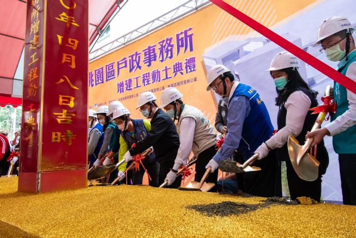 桃園市長鄭文燦8日上午前往桃園區,出席「桃園區戶政事務所增建工程動土典禮」。鄭市長表示,桃園升格 6年以來,人口成長超過21萬人,為全台第一,其中桃園區目前人口也已突破45萬人,對於社會服務、休閒活動的空間需求與日俱增,且要提高社會福利的可及性,因此市府決定在桃園區戶政事務所既有建築物上增建5、6樓,規劃於5樓設置家庭暴力暨性侵害防治中心及第二家庭服務中心辦公服務空間,6樓則規劃為市民活動中心,工程總經費約6,300萬元,預計明(111)年2月完工後,桃園區戶政事務所將成為便民服務、醫療保健、社福照護及里民交流的多功能大樓,提供在地居民更舒適的集會場所及社會服務據點。