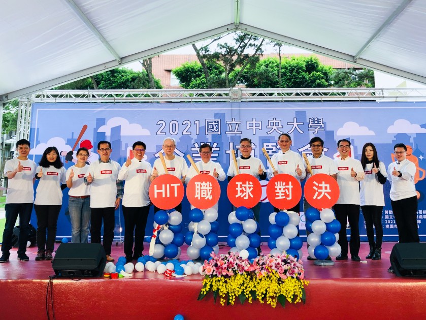 「HIT! 職球對決—中央大學企業博覽會」4月10-11日在中央大學教研大樓廣場盛大登場!今年有多達百家企業進駐,釋出徵才職缺約4500多個。中央大學周景揚校長和桃園市長鄭文燦等重要貴賓共同主持企業博覽會開幕儀式,一同直擊棒球,期許同學在職場上都能勇往直前,揮出自己的全壘打!