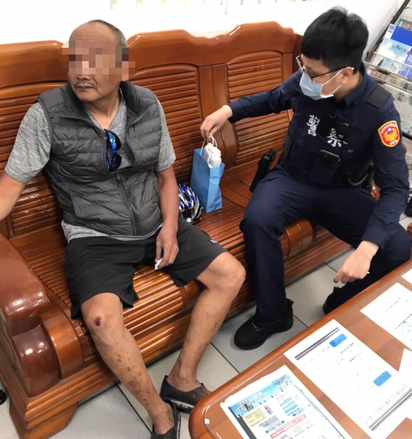 所幸路過的巡邏員警黃冠嘉及劉祖雲,察覺男子神色有異,立即上前主動關心,員警見男子臉色發白,身體狀況明顯不佳,趕緊電召巡邏車將他帶回派出所休息,並適時提供熱食及飲水讓男子補充體力。