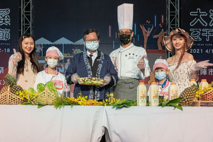 桃園市長鄭文燦18日下午前往大溪區,出席「2021大溪豆干節—豆福宴」。鄭市長表示,豆干已成為大溪代表食品,從第一代黑豆干發展至今,不僅口感提升,也更加健康可口。今日舉辦「豆福宴」,邀請民眾製作豆干沙拉、豆干春捲及豆干三明治等創意料理,不僅料理容易上手,遊客也能體驗大溪豆干在傳統中的創新滋味,期盼大溪豆干以更生活化的方式,走進大家日常,大溪豆干節能受到市民喜愛。
