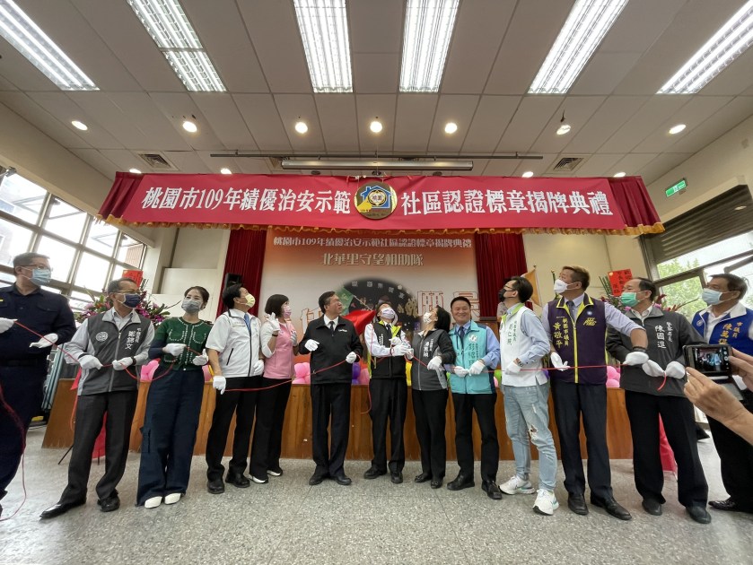為強化社區治安營造執行力,建立多元合作夥伴關係,桃園市政府警察局19日特別在平鎮區北勢市民活動中心舉辦桃園市「績優治安示範社區」揭牌儀式,平鎮區北華里獲選桃園市109年績優治安示範社區,桃園市長鄭文燦特別出席頒發認證標章,並感謝所有守望相助隊成員不辭辛勞的付出,讓社區的治安越來越好。
