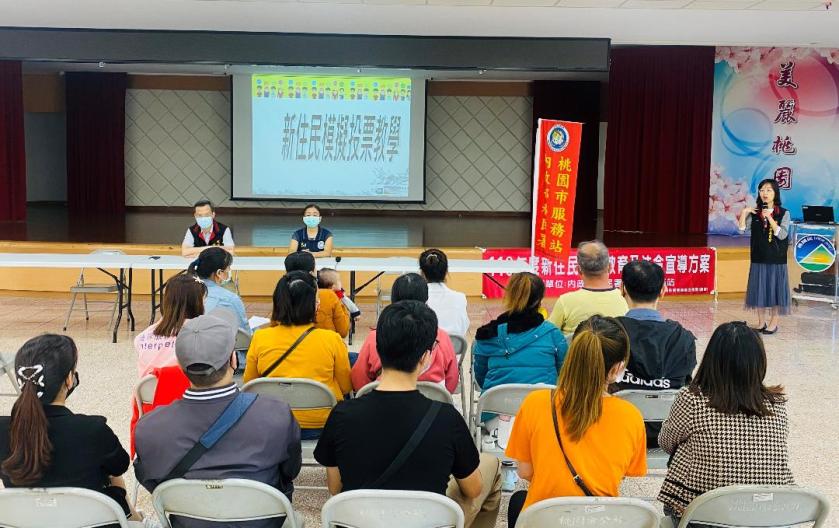 今 (110)年8月28日將進行全國性公民投票案的投票,屆時民眾可以針對重大議題表示自己的看法。為使新住民能了解這些重要投票相關資訊,移民署北區事務大隊桃園市服務站與桃園市選舉委員會攜手合作,22日在桃園市桃園區公所四樓大禮堂舉辦「新住民模擬投票教學」。