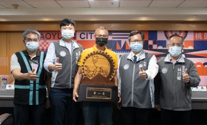 桃園市長鄭文燦28日上午主持市政會議,接受原民局呈獻「桃園市110 年參加全國原住民族運動會競賽總錦標第1名」。鄭市長表示,今(110)年全國原住民族運動會在宜蘭舉行,桃園市代表隊參加17項競賽,參賽隊職員及選手共714人,繼上屆奪得105面獎牌後,本屆更奪得51面金牌、41面銀牌及31面銅牌,共123面獎牌破上屆紀錄,桃園再次榮獲全國競賽總錦標第1名,成功蟬聯三連霸,成績相當亮眼,展現原民實力,也為桃園運動的推廣奠定良好基礎。