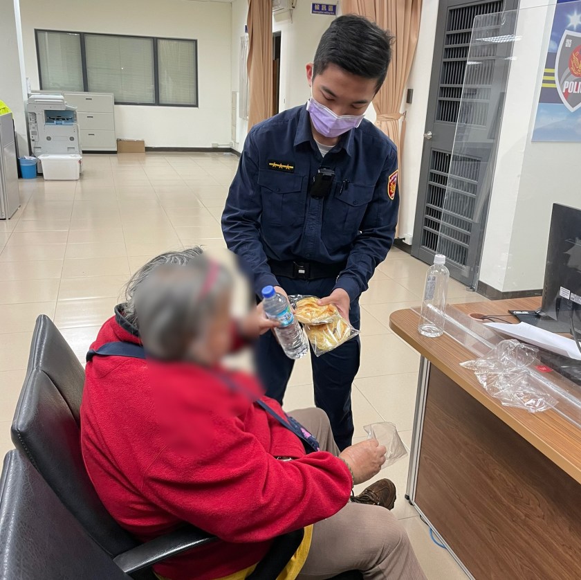 30日晚間2時許龜山警分局大華所警員薛博宇、葉韋辰執行巡邏勤務,巡經龜山區復興一路發現一名婦人站於路旁,眼神呆滯不知所措似乎需要協助;員警上前查詢關懷才發現婦人疑似失智又不言語,因深夜天氣轉涼,擔心老婦人發生意外先帶回派出所休息,給予溫水、麵包食用。