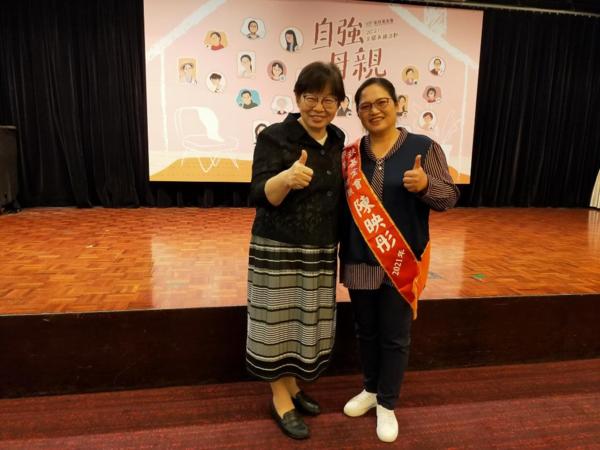 家扶基金會執行長何素秋(左)與全國自強母親陳映彤(右)合影