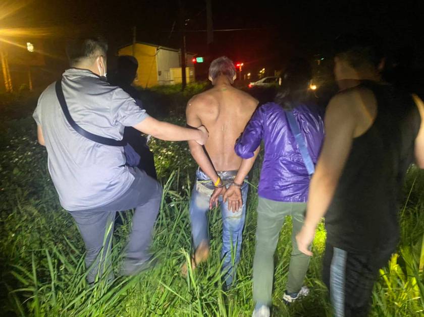 警方獲報後派遣多組警網前往案發現場搜索,於23時許在附近的草叢內迅速查捕嫌犯到案,並起獲兇刀及血衣,警方詢後依殺人罪嫌將嫌犯移送桃園地檢署偵辦。