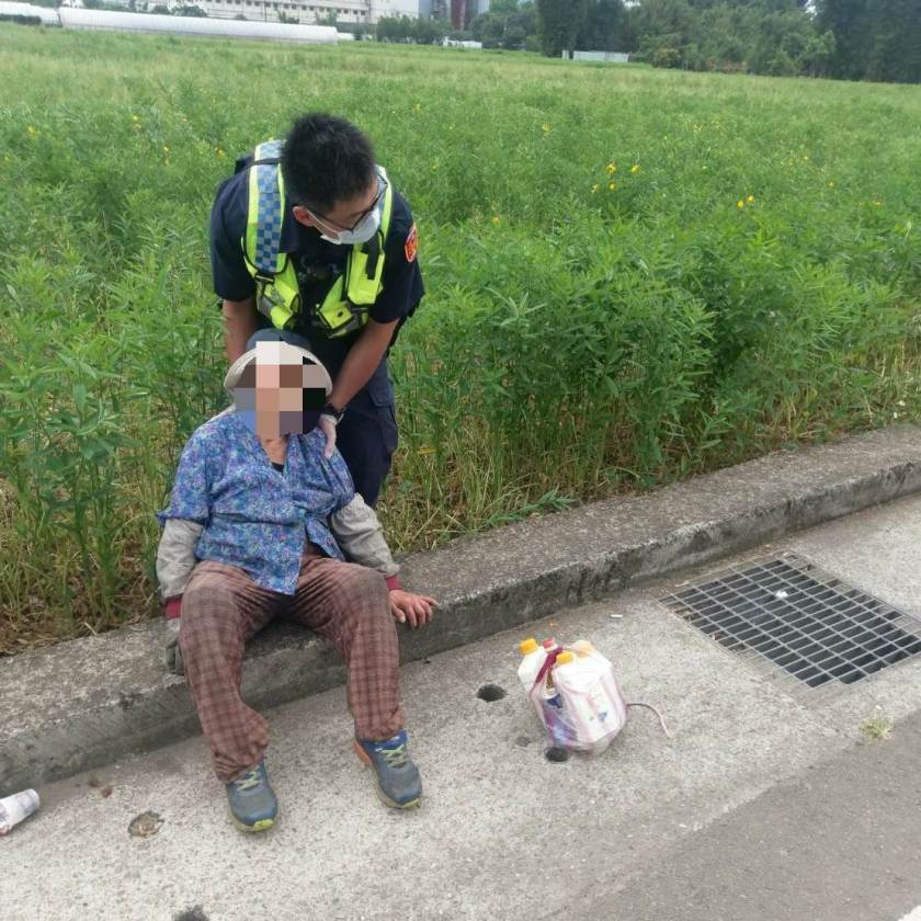 八德分局廣興派出所巡佐劉嘉億、警員朱國瑋18日下午下午1點多巡邏獲報建國路772巷附近有民眾需要協助,便立即趕往現場,發現一名老婦坐臥在路旁的草叢堆裡,因身體不適無力自行起身,員警見狀立即上前將她扶至一旁休息。