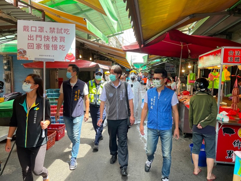 因應國內新冠肺炎疫情擴大,全國疫情警戒升至第三級至28日,有鑑於此,中壢警分局20日上午與當地里長、中壢區公所、衛生局及經發局等單位加強宣導民眾外出戴口罩及配合實聯制登記等規定。