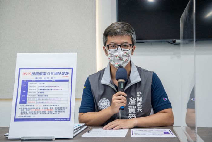 中央流行疫情指揮中心(22)日公布新增321例本土個案及2例境外移入;另有400例本土個案為校正回歸上週各日個案,其中桃園市確診個案為20例,皆為新增個案,非屬校正回歸個案。新聞處長詹賀舜說明,今日桃園20例確診個案中,經初步疫調結果,桃園個案公共場所足跡分布於龜山區、大園區、桃園區及八德區等地,活動足跡涵蓋購物中心、學校校門口、超市、五金百貨及機場捷運等,請曾出入相關場所的市民朋友,進行自我健康監測至6月4日,如有發燒、上呼吸道、腹瀉或嗅味覺異常等疑似症狀,可撥打1922或0800-033355專線通報,由衛生局提供相關協助。