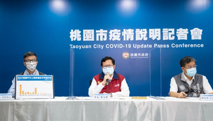 中央流行疫情指揮中心(1)日公布桃園新增23例本土個案,桃園市政府下午召開疫情說明記者會。鄭市長表示,雖然國內新冠病毒Rt值已降至1.02,但6月14日能否降級管制,仍要視確診人數、熱區情況、傳播率等各種條件而定。鄭市長說,防疫的每一天都很重要,每個環節都要照顧,每個工作都要落實,中央地方、政府民間同心協力抗疫之外,也要持續檢討改進,加強不足之處,才能築起更安全的防火牆。因此,呼籲所有市民遵守戴口罩、不群聚、不內用、最少時間一次購足等防疫原則,全民提高防疫意識,一起努力減少社會活動及群聚風險,共同期盼疫情早日趨緩。