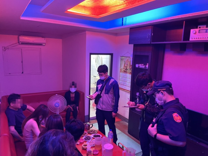 於1時許見小吃店鐵捲門半開,陳姓女陪侍(79年次)、詹姓女員工(58年次)及端菜的楊姓男員工(72年次)正準備進入之際,遂上前表明身分並帶同3人進入屋內,並於屋內後側包廂發現滿桌酒菜及酒客2名、林姓女陪侍(88年次)及姜姓女陪侍(72年次)等4人坐於沙發飲酒聊天,室內冷氣及影音視聽設備開啟且菸味濃厚,營業事實明確。