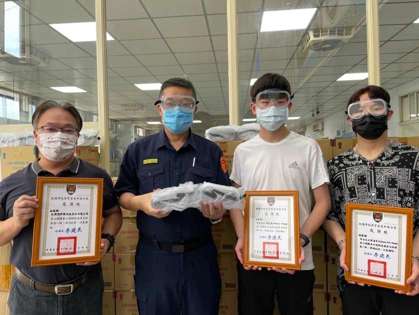 榮欣志工大隊青年志工楊定凱同學及蔡濬宇同學,長年在美國紐約的EF Academy就學,曾目睹國外疫情慘狀,兩位同學有感台灣防疫工作,無論是口罩、群聚告發或特定營業處所的稽查,幾乎都是警察機關一手包辦,加上兩位同學小時候曾經參加過小小警察營,所以兩位同學決定盡點棉薄之力,購買防疫面罩回饋警察同仁的辛勞。