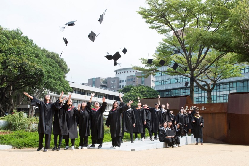 今年代表畢業生致詞的兩位同學,一位是資訊工程學系陳俐欣,一位則是外籍生企業管理學系山中宙。陳俐欣說:「我們這一屆很特別,出生遇到921、幼稚園SARS爆發,大學有一半的時間與新冠肺炎對抗,連畢業典禮都取消。歷經這些的我們會更加堅韌、有勇氣!」山中宙則提到自己最難忘的是參與高中服務學習與日本招生,向台、日兩國高中生介紹彼此的國家,真正完成了自己「成爲台日交流的橋樑」的夢想!