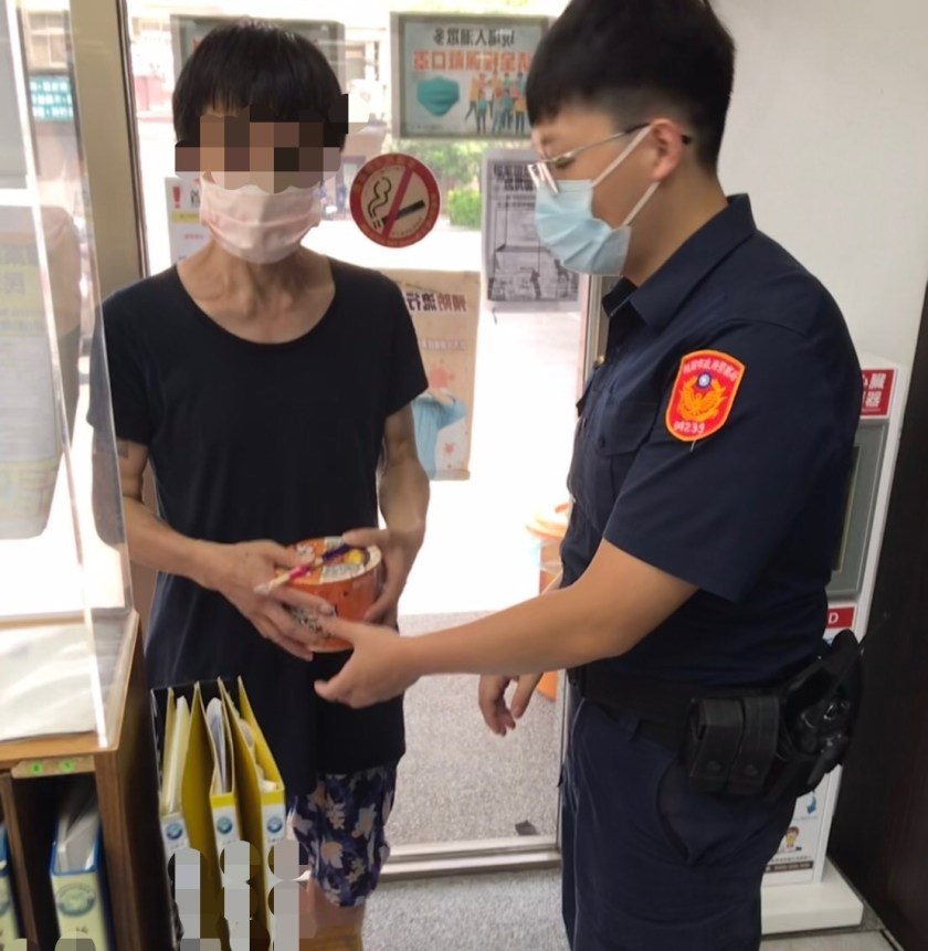 時逢疫情爆發,在外尋找臨時工作實屬困難,警方見其已狀況確實可憐,遂拿所內的泡麵贈予該民眾,盼能與其一同渡過疫情這難關。