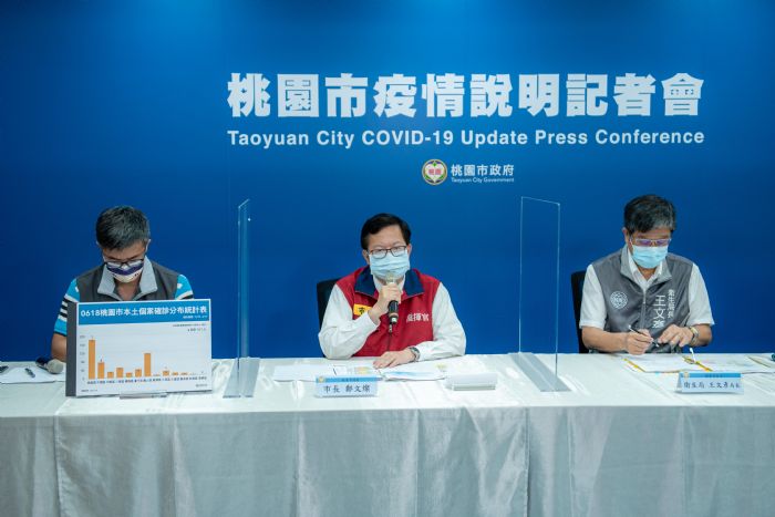 中央流行疫情指揮中心(18)日公布桃園新增6例本土個案,桃園市政府下午召開疫情說明記者會。鄭市長表示,桃園市完成連續3日81歲以上高齡長者接種COVID-19疫苗計劃,目前持續進行長照機構及洗腎病患的疫苗接種工作。明(19)日將為79歲至80歲長者接種疫苗,分為上午8:00-12:00及下午14:00-18:00兩場次,於28個場站分流施打,達成精準接種、友善接種、有序接種等三大目標。