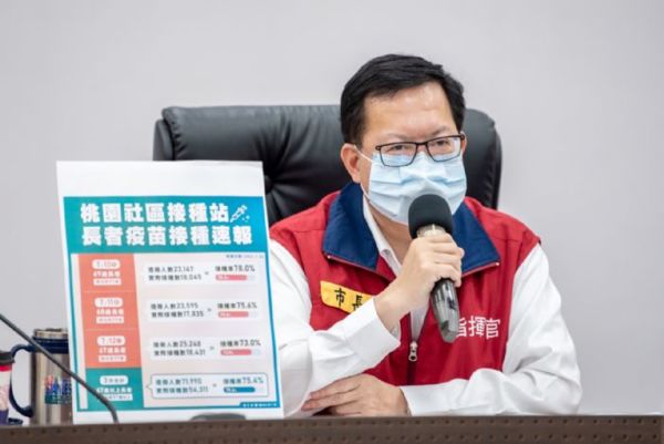 桃園市長鄭文燦今(12)日下午主持桃園市政府防疫專案會議後,召開疫情說明記者會。鄭市長表示,本市第9類及第10類對象約24萬7,561人已登記疫苗施打意願,其中6,216人選打AZ疫苗、8萬8,361人不限廠牌,第2期預約系統開放至今日下午5點為止,預估本市超過10萬人登記預約施打AZ疫苗,期勉市府團隊全力以赴完成任務。