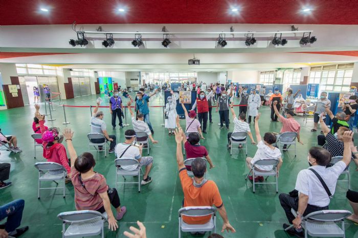 鄭市長也感謝聖保祿醫院及八德區衛生所醫療團隊及市府服務團隊,於社區接種站提供貼心服務;陽明高中接種站由「聲子樂集」管樂社進行防疫公演,用樂聲舒緩長者緊張的心情;大成國中則採取「教室型打法」,長者就定位後不用移動,由醫護人員移動為長者施打,流程順暢長者也能更輕鬆。
