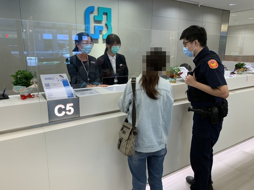 中壢警分局中福所員警李居霖、吳宗鴻19日11時許,執行巡邏勤務時接獲中壢區九和二街某銀行行員通報,疑似有民眾遭受詐騙,警方至現場後發現一名43歲張女站在櫃台前不斷使用手機,銀行經理也語重心長向員警表示,張女近期已經匯多筆十萬元以上的金額,請員警一定要幫忙阻止,不然張女戶頭裡的錢快被騙光了。