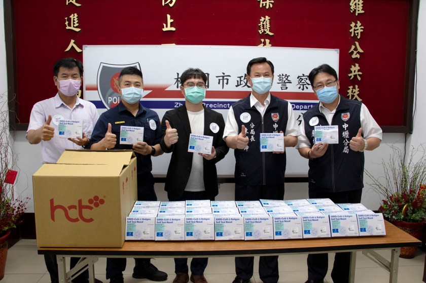 回春堂製藥偕公益傳播基金會,22日捐贈快篩試劑500劑予桃園市政府警察局中壢分局,希望能以實際物資支援,支持桃園在地防疫工作,公益傳播基金會執行長唐平榮表示,疫情期間,員警除了原有勤務外,還需支援防疫工作,相當辛苦。雖然大部分員警已接種疫苗,但畢竟還是無法達到百分百免疫,若有快篩劑就能在出勤前了解自身狀態,讓接觸到員警的民眾能更安心。