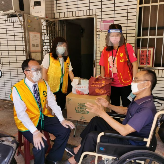 隨著7/13政府微解封,華山桃園13區全面啟動到宅防疫關懷禮服務,將麵條、罐頭、營養粉、口罩及酒精等防疫生活物資送至長輩家,二個月以來透過電話關懷,不間斷陪長輩挺過疫情,疫情趨緩,到宅伴長輩話家常,爺爺奶奶露出難得的笑容,台灣土地銀行內壢分行響應此活動,張金水經理號召員工擔任一日義工,更以行動支持認助孤老服務經費,期盼拋磚引玉,邀請社會大眾一起加入「愛老人」的行列。