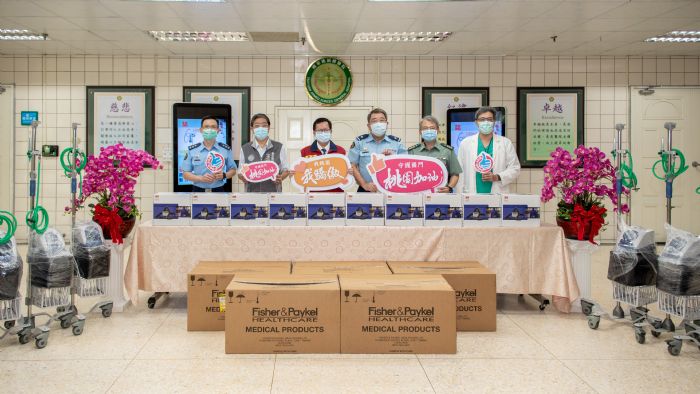 桃園市長鄭文燦28日上午前往龍潭區,慰勞國軍桃園總醫院全體人員,並代表市府捐贈10台高流量氧氣鼻導管全配系統(HFNC)及10台電動過濾式呼吸防護具(PAPR),供院方運用、造福患者。鄭市長特別肯定台灣醫療體系在防疫過程中扮演第一線角色,未來政府除了持續提升國境防疫服務,也期盼擴充醫療量能,因應所有可能的疫情風險。