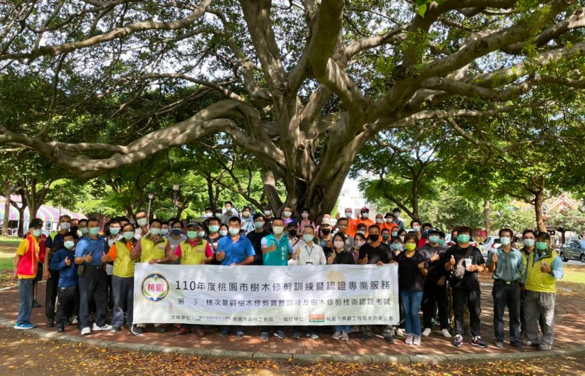 為提升桃園市景觀樹木的健康與美質,增進第一線樹木修剪作業人員技能,本局委託桃園市景觀工程商業同業公會自110年8月至11月辦理5梯次教育訓練及認證考試,每梯次舉行為期2天的「景觀樹木修剪技術教育訓練」及「樹木修剪認證考試」,經考試及格始得發給合格證,今年起要求在本市執行樹木修剪作業人員必須持有合格證才能執行公園綠地行道樹木的修剪作業,藉以維護景觀樹木的修剪品質,促使本市的環境景觀更加美麗。