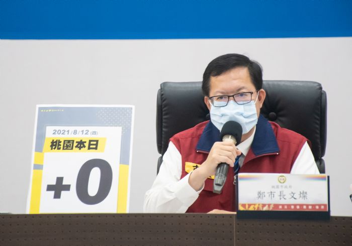 桃園市長鄭文燦12日下午主持桃園市政府防疫專案會議後,召開疫情說明記者會。鄭市長表示,中央流行疫情指揮中心今日公布桃園無新增確診個案,桃園已經連續4天「+0」,目前居家隔離人數94人、居家檢疫人數2,094人,桃園正在疫情最後收斂階段,5月25日以後疫情開始往下遞減,社交活躍圈群聚感染也逐漸收斂完成,希望守住每一個防疫環節,持續保有「+0」成果;另一方面,6月22日以來境外移入個案逐漸攀升,且經基因定序結果多為Delta病毒,可見病毒已在家門口,桃園將持續守護從機場、防疫旅館到醫院的3道防線,達成決戰境外、嚴守國境的目標。