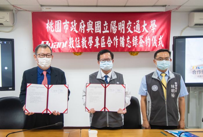 桃園市長鄭文燦16日上午前往南崁高中,出席桃園市政府與國立陽明交通大學推動高中職數位教學專區合作備忘錄簽約儀式。鄭市長表示,為整合數位教育資源,市府與國立陽明交通大學簽立3年共6期的合作計畫,建置「ewant桃園市高中數位教學專區」,引進各大專院校豐富、多元的數位課程,可提供市內6萬名高中學生免費使用,不僅讓學生可多元選擇課程,打破地域限制隨時隨地學習,更可達成學生探索學習與自主學習的效果,可說是邁向終身學習的重要平台。