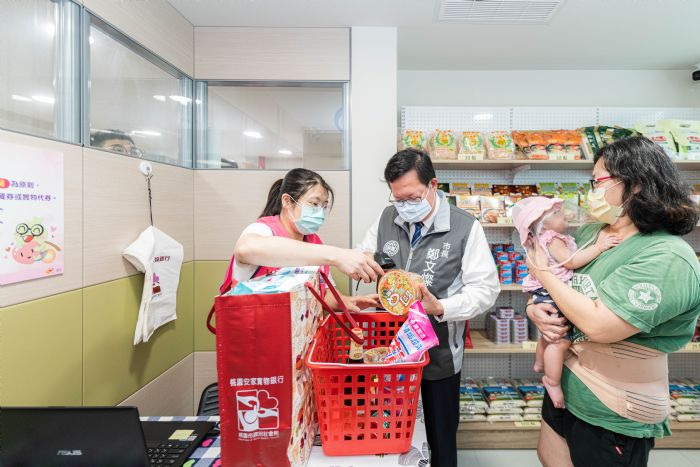桃園市長鄭文燦18日上午前往桃園家庭服務中心,視察愛心餐食及物資箱服務。鄭市長表示,為解決經濟弱勢家庭生活物資貧乏與物資來源不穩定情形,市府社會局除分別於桃園南、北2區各設置1家實物銀行旗艦店外,更有20家實物銀行分行、69處民間物資發放站,方便民眾就近申請民生物資,更透過物資配送與倉儲管理系統,讓捐贈物資妥善運用;此外,也結合121家餐飲業者、超商及賣場,提供愛心餐食券及實物代券,使有需求的民眾可透過多元方式獲得物資、便當、早餐、麵食等,未來市府也將持續擴大愛心店家,讓有需要的民眾都能夠獲得更好的照顧。