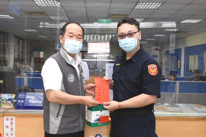 桃園警察分局景福派出所警員李承翰、王建豪18日13時許,接獲第一銀行桃園分行職員通報,有民眾欲提領警示帳戶款項,請員警到場協助處理。