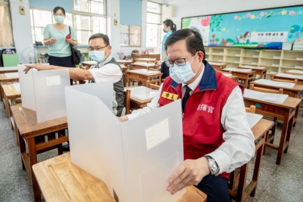 市府推動COVID-19疫苗接種計畫並設置社區接種站,第1至第6期共有40所學校、超過9,000人次教職人員參與接種站服務工作,將由教育局將辦理敘獎及致贈獎勵金等措施,感謝教職人員的付出與辛勞。9月1日開學後,學校的疫苗接種站將不再使用,改以58處社區接種站替代,讓學校專心從事教學工作。包括市議員簡智翔、市府教育局長林明裕、環保局長呂理德、桃園區長陳玉明、青溪國小校長萬榮輝均一同視察。