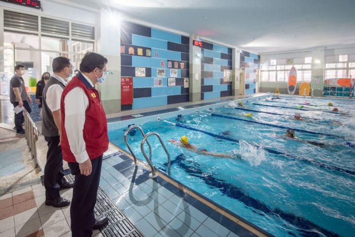 市府持續協助各校推動遠距教學或線上教學,並由教育局督導各校落實配戴口罩、體溫量測、勤洗手及清潔消毒等防疫工作,鼓勵家長隨時關心學生身體健康,並運用家庭聯絡簿記錄家庭成員自主健康管理情形,其中在青溪國小泳池使用方面,除了落實實名制、分群分眾及人流管制等措施,學生在水中訓練外均須配戴口罩;音樂課則採固定座位,老師也會微調課程內容、避免吹奏課程。