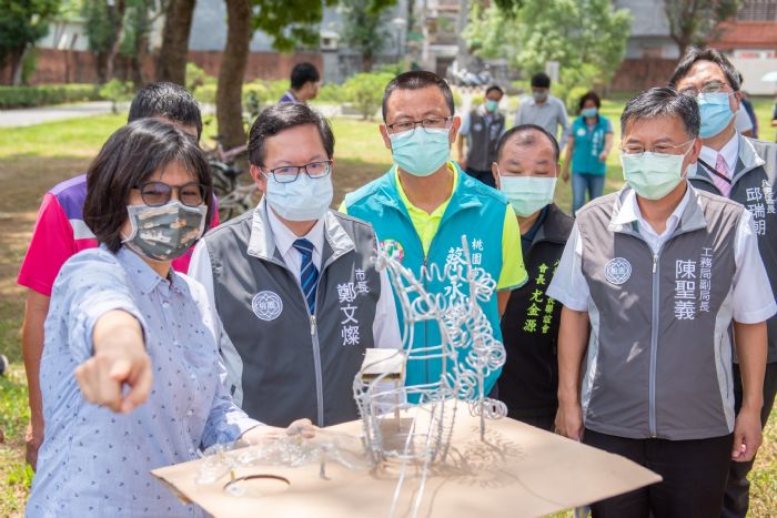桃園市長鄭文燦2日上午前往八德區,出席「楓樹腳公園景觀改善工程設計說明會」時表示,市府推出「共融式公園推動計畫」,在每個行政區挑選一座公園設置旗艦型共融遊戲場,八德區選擇楓樹腳公園作為代表,其占地3.5公頃,面積廣大,市府納入兒童及地方居民意見,同時經專家審議後,規劃投入6,500萬元預算,將以「燦爛的童年時光」為主題進行公園改造,工程預計111年4月底開工、111年年底完工,打造一座全年齡層都愛用的共融式公園。