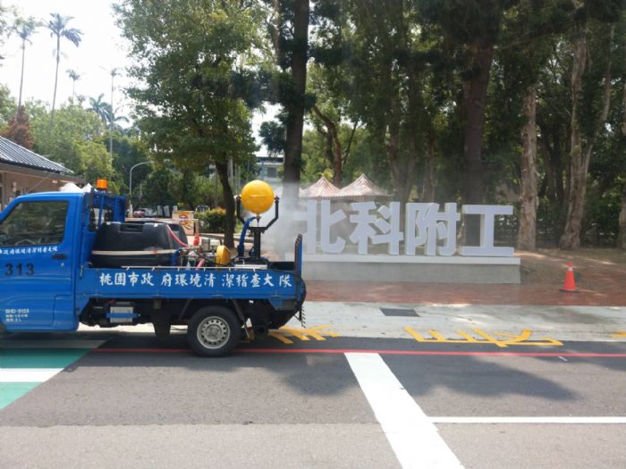 環保局長呂理德表示,3日接獲北科附工學生確診後,當晚火速調派清潔大隊動員13人,2台消毒車及6部背負式消毒執行校園內外環境大清消,消毒進行直到深夜才結束;也針對本案例確診者的公共場所足跡熱點,包括桃園展演中心、汽車保養廠、汽車旅館及賣場餐廳等,環保局清潔大隊也立即加派人力,全面完成消毒工作。